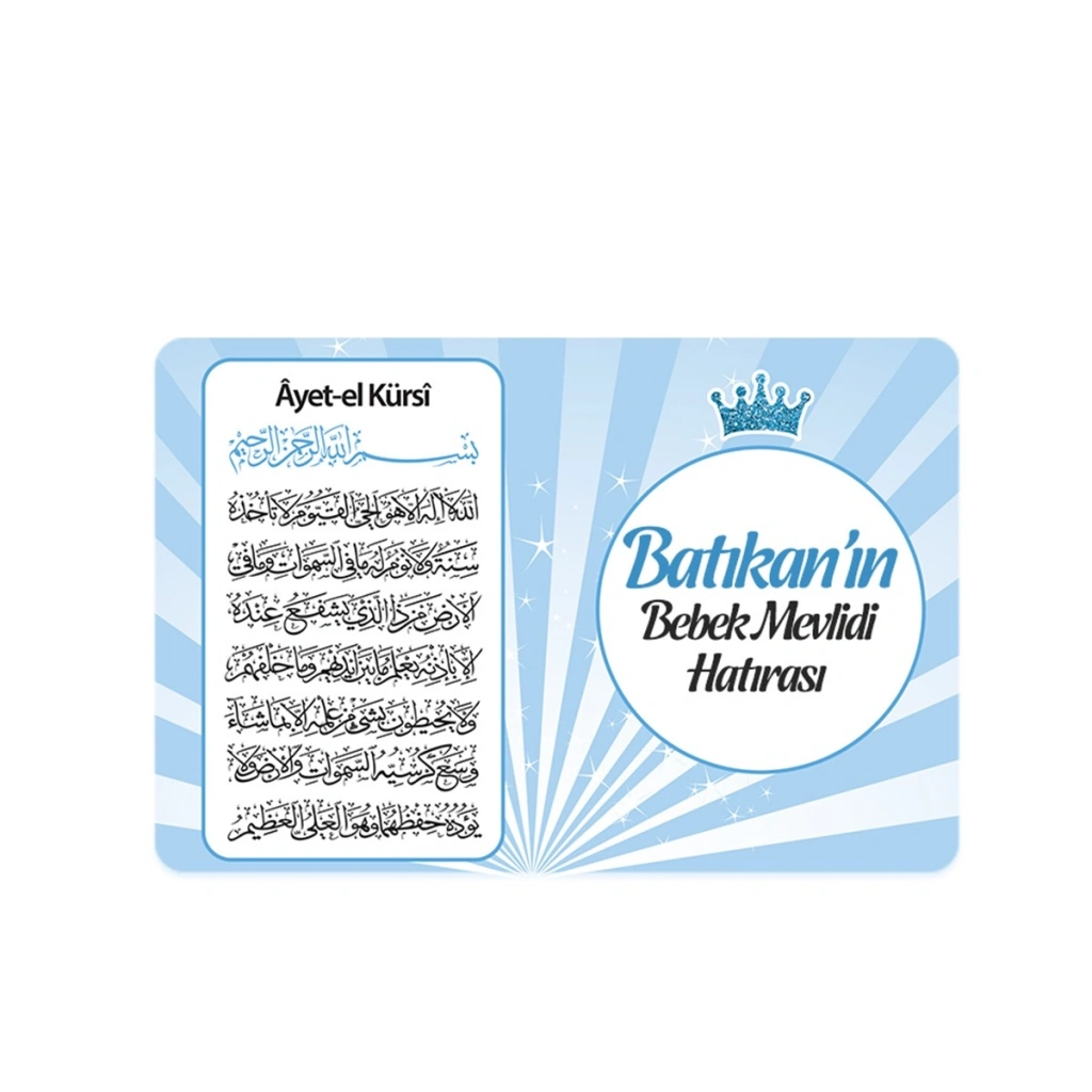 Taç Model Mavi Renkli Mevlüt İçin İsme Özel Ayet-el Kürsi Magnet