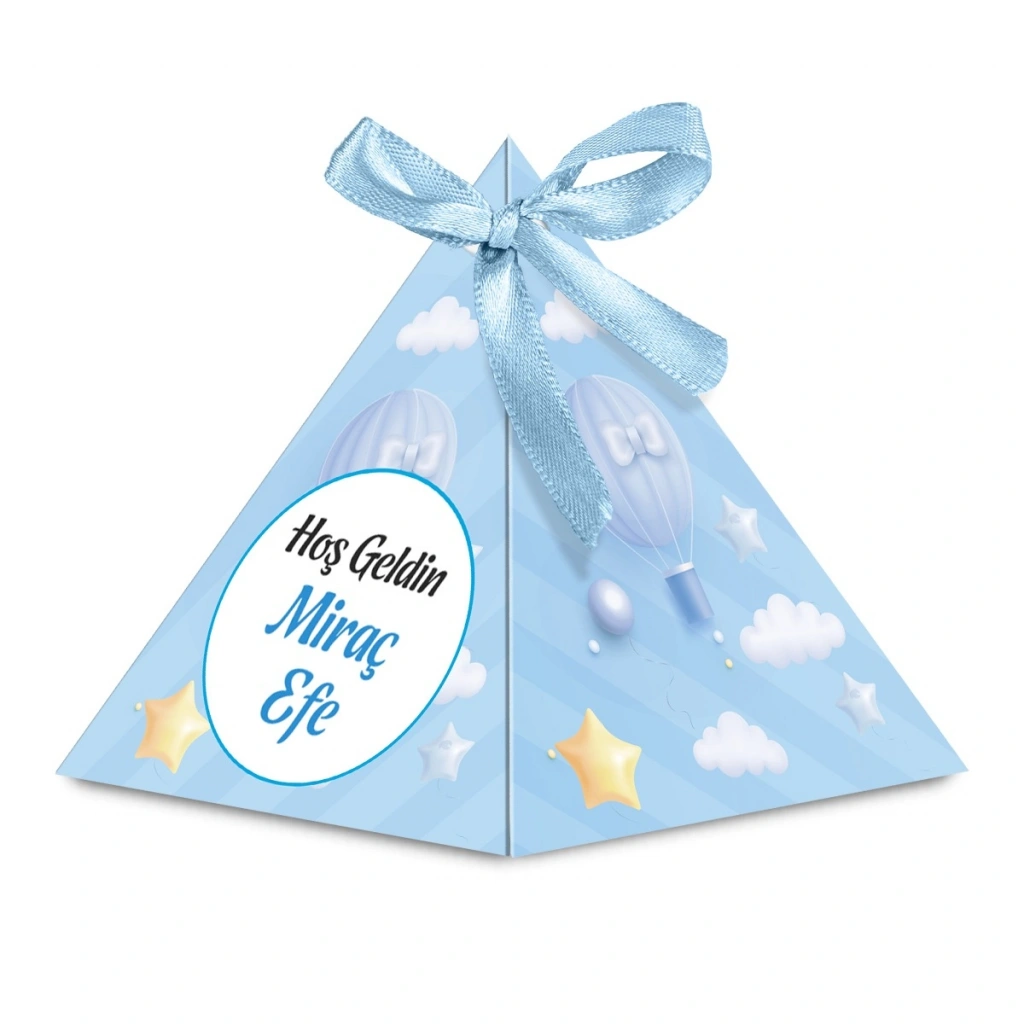 Balon Model Mavi Renkli Mevlüt Şekeri İçin İsme Özel Piramit Külah