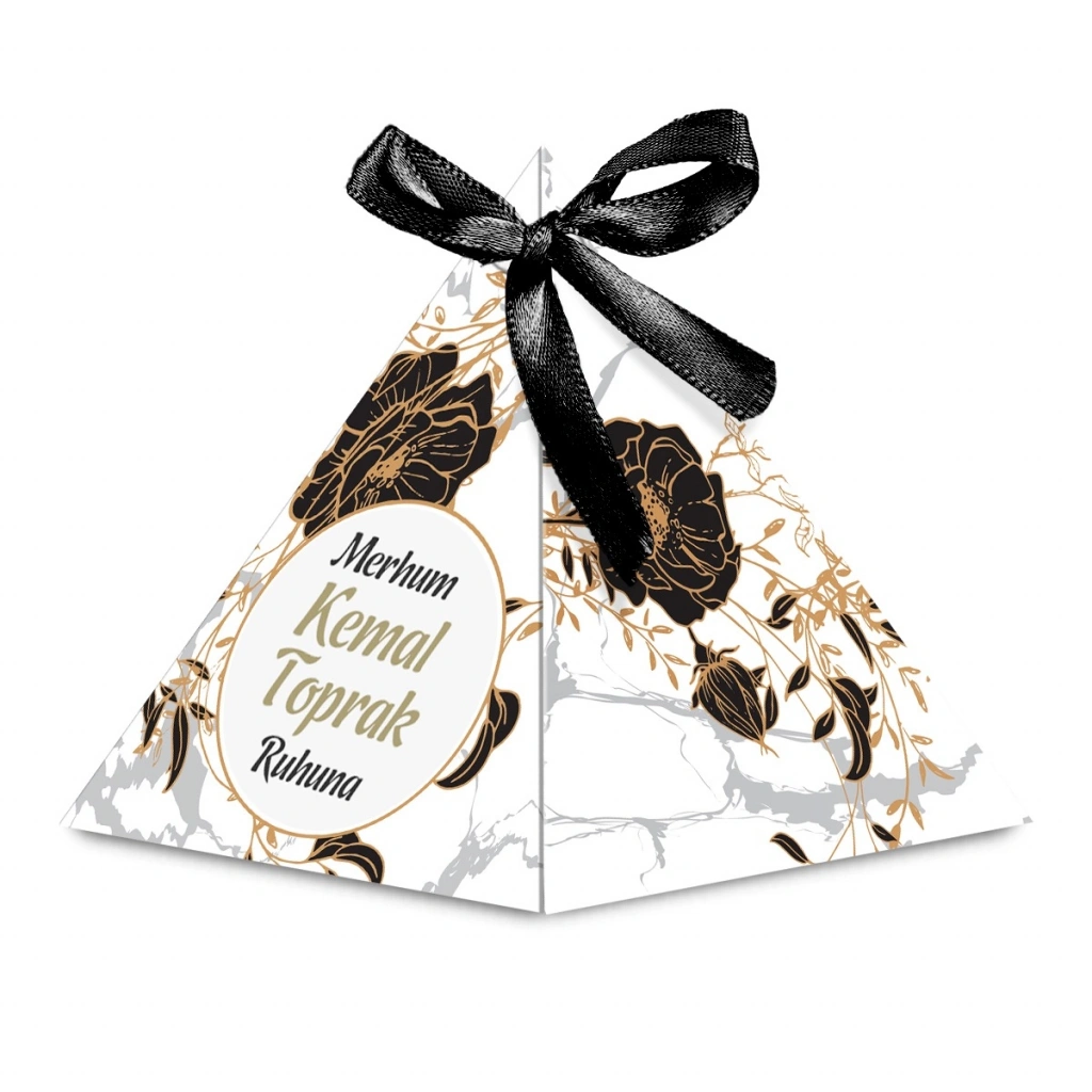 Altıgen Model Siyah Renkli Mevlüt Şekeri İçin İsme Özel Piramit Külah