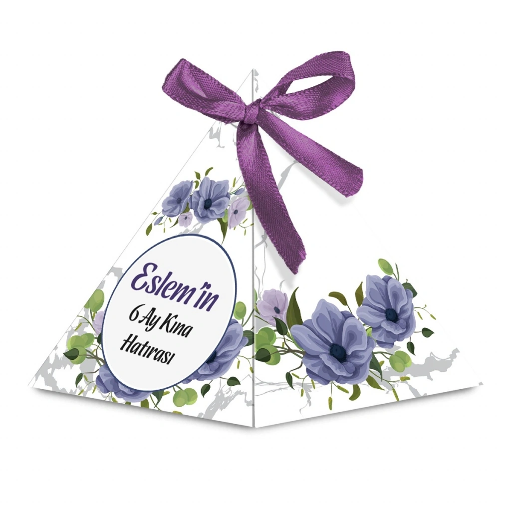 Altıgen Model Mor Renkli Mevlüt Şekeri İçin İsme Özel Piramit Külah