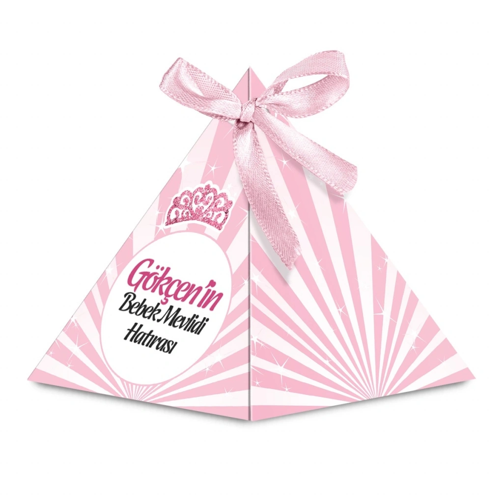 Taç Model Pembe Renkli Mevlüt Şekeri İçin İsme Özel Piramit Külah