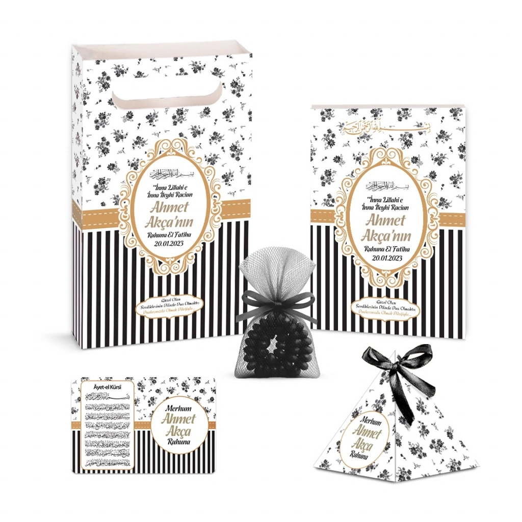 Çizgi Model Siyah Renkli Yasin Kitabı, Piramit Külah, Mevlüt Şekeri, Ayet-el Kürsi Magnet, Karton Çanta