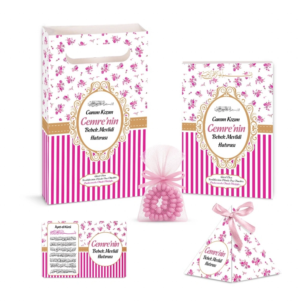 Çizgi Model Pembe Renkli Yasin Kitabı, Piramit Külah, Mevlüt Şekeri, Ayet-el Kürsi Magnet, Karton Çanta