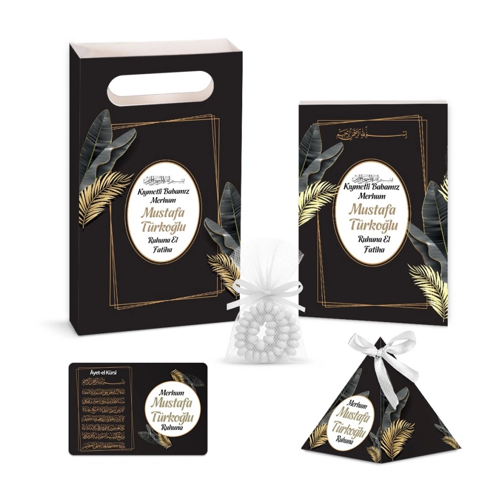 Zerafet Model Siyah Renkli Yasin Kitabı, Piramit Külah, Mevlüt Şekeri, Ayet-el Kürsi Magnet, Karton Çanta