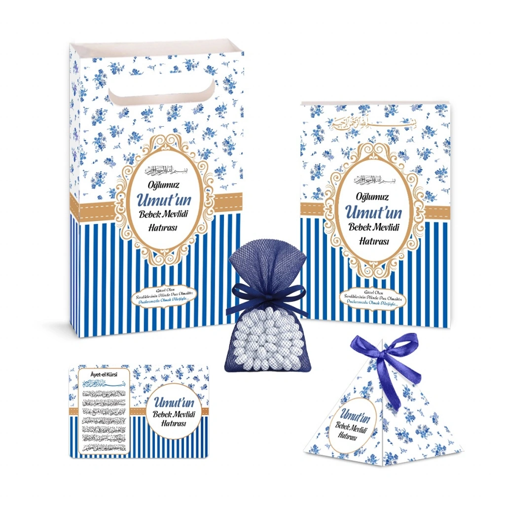 Çizgi Model Lacivert Renkli Yasin Kitabı, Piramit Külah, Mevlüt Şekeri, Ayet-el Kürsi Magnet, Karton Çanta