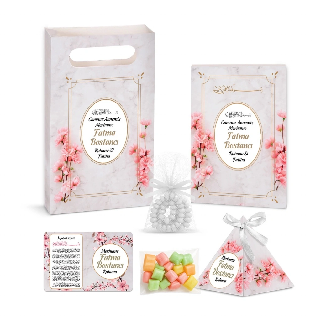 Zerafet Model Pembe Renkli Yasin Kitabı, Piramit Külah, Mevlüt Şekeri, Ayet-el Kürsi Magnet, Karton Çanta