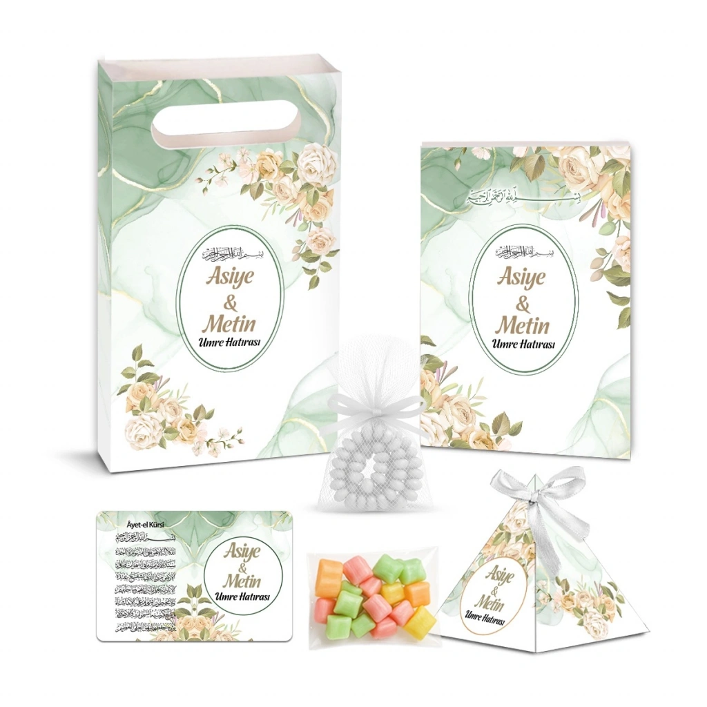 Zerafet Model Yeşil Renkli Yasin Kitabı, Piramit Külah, Mevlüt Şekeri, Ayet-el Kürsi Magnet, Karton Çanta