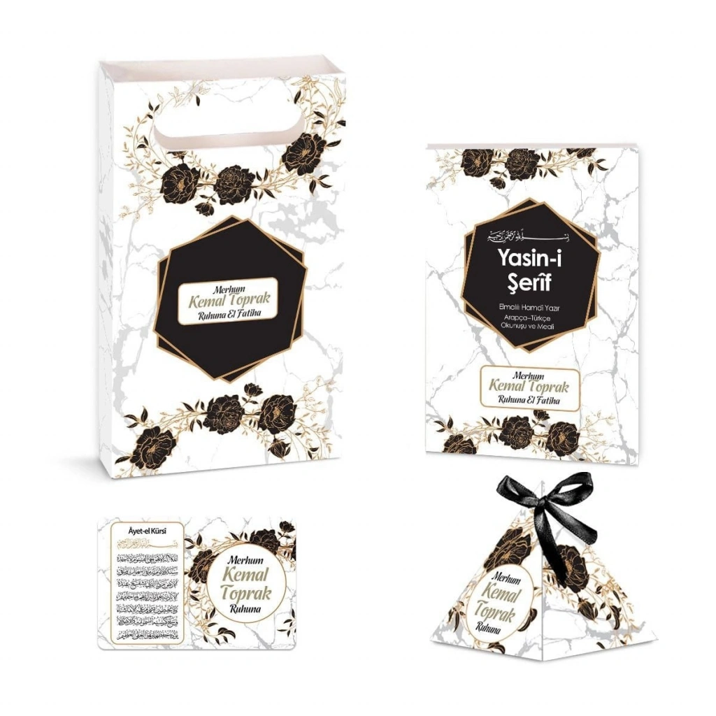 Altıgen Model Siyah Renkli Yasin Kitabı, Piramit Külah, Mevlüt Şekeri, Ayet-el Kürsi Magnet, Karton Çanta
