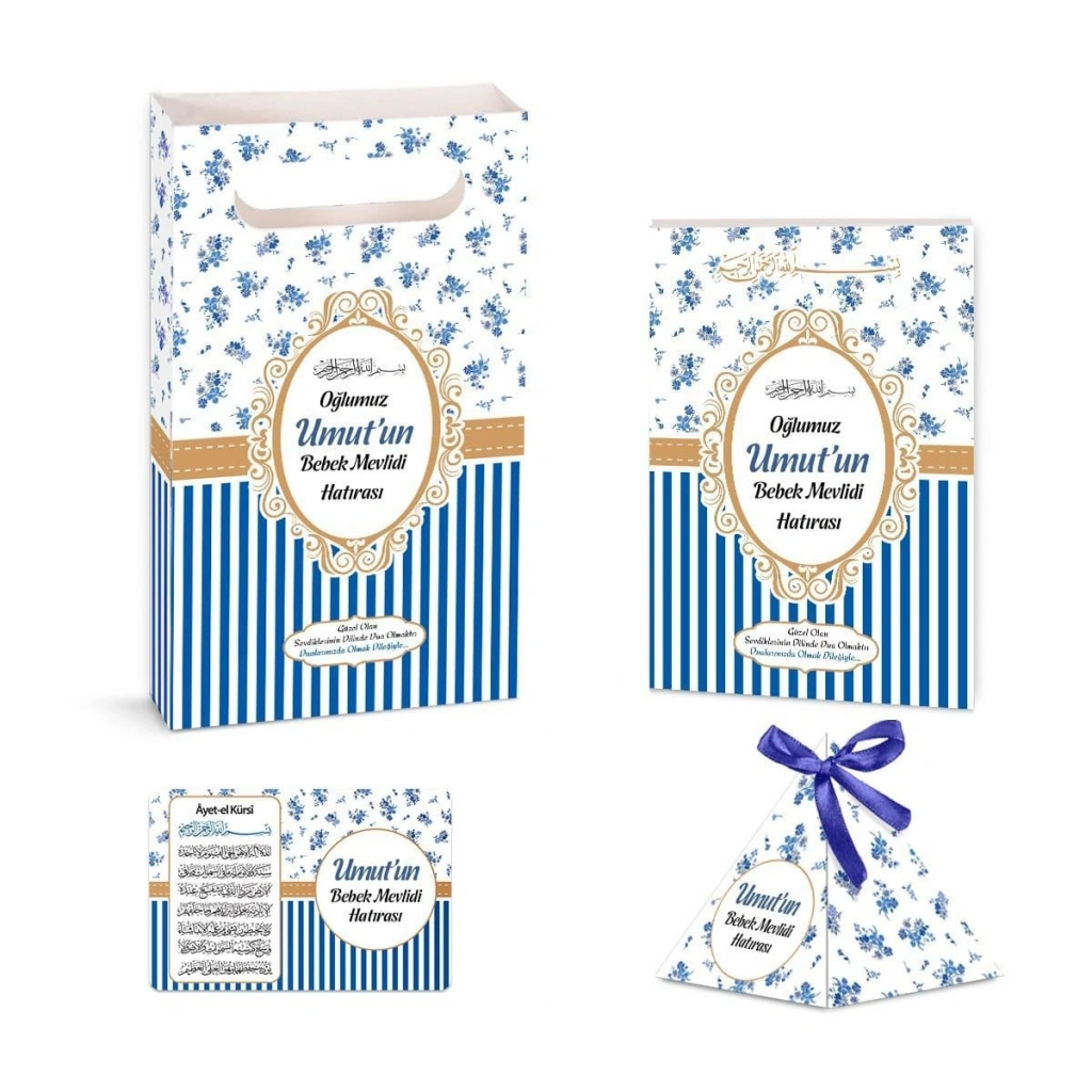 Çizgi Model Lacivert Renkli Yasin Kitabı, Piramit Külah, Mevlüt Şekeri, Ayet-el Kürsi Magnet, Karton Çanta