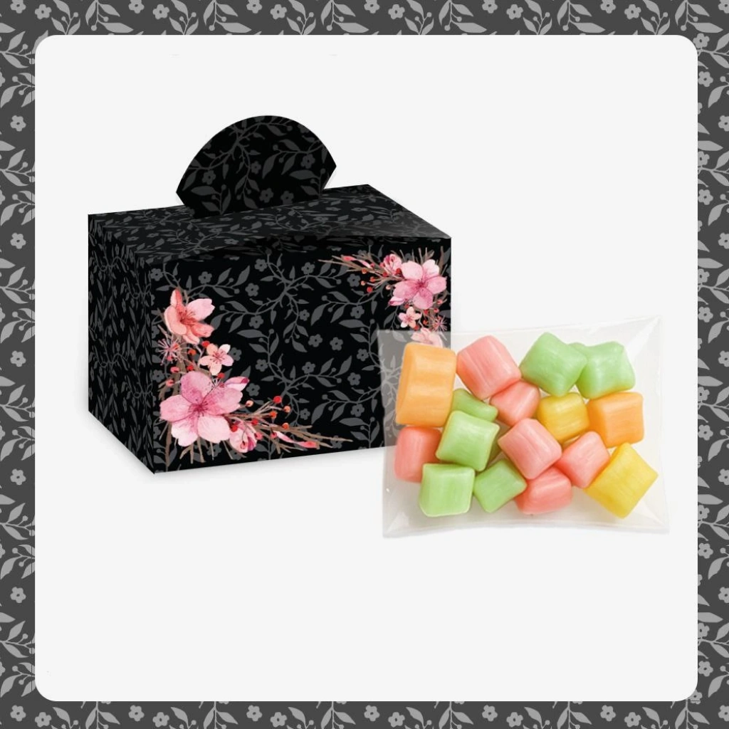 • Çiçek Model Siyah Renkli Lokum Kutusu ve Mevlüt Şekeri