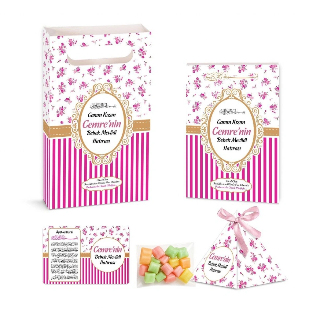 Yasin Kitabı, İsme Özel Piramit Külah, İsme Özel Ayet-el Kürsi Magnet, Karton Çanta ve Mevlüt Şekeri Seti