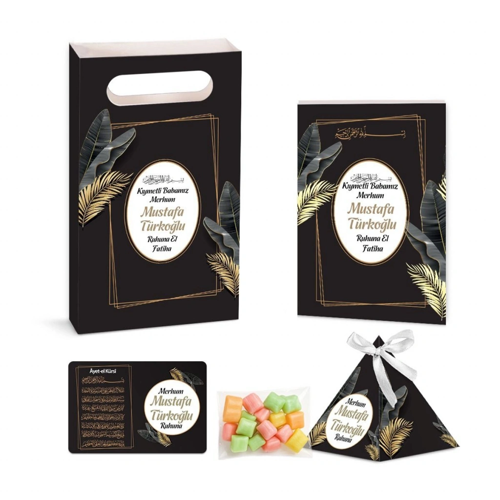 Zerafet Model Siyah Renkli Yasin Kitabı, Piramit Külah, Mevlüt Şekeri, Ayet-el Kürsi Magnet, Karton Çanta