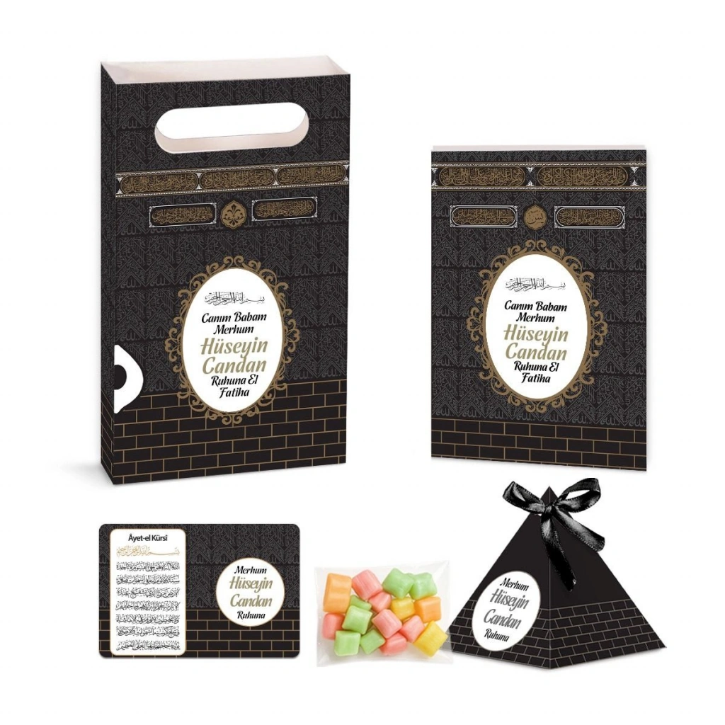 Kabe Model Siyah Renkli Yasin Kitabı, Piramit Külah, Mevlüt Şekeri, Ayet-el Kürsi Magnet, Karton Çanta