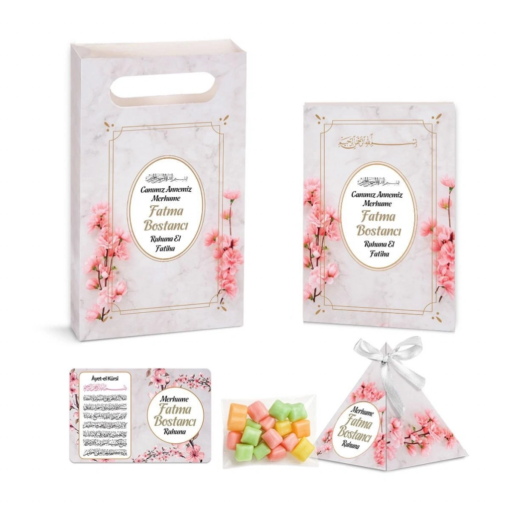 Zerafet Model Pembe Renkli Yasin Kitabı, Piramit Külah, Mevlüt Şekeri, Ayet-el Kürsi Magnet, Karton Çanta
