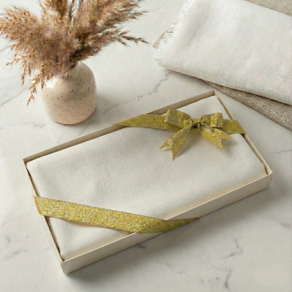 • Hediyelik Kutuda Krem Renkli Flamlı Pamuk Eşarp