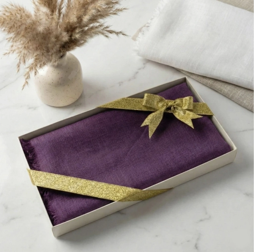 • Hediyelik Kutuda Mor Renkli Flamlı Pamuk Eşarp
