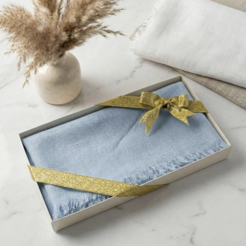 • Hediyelik Kutuda Mavi Renkli Flamlı Pamuk Eşarp
