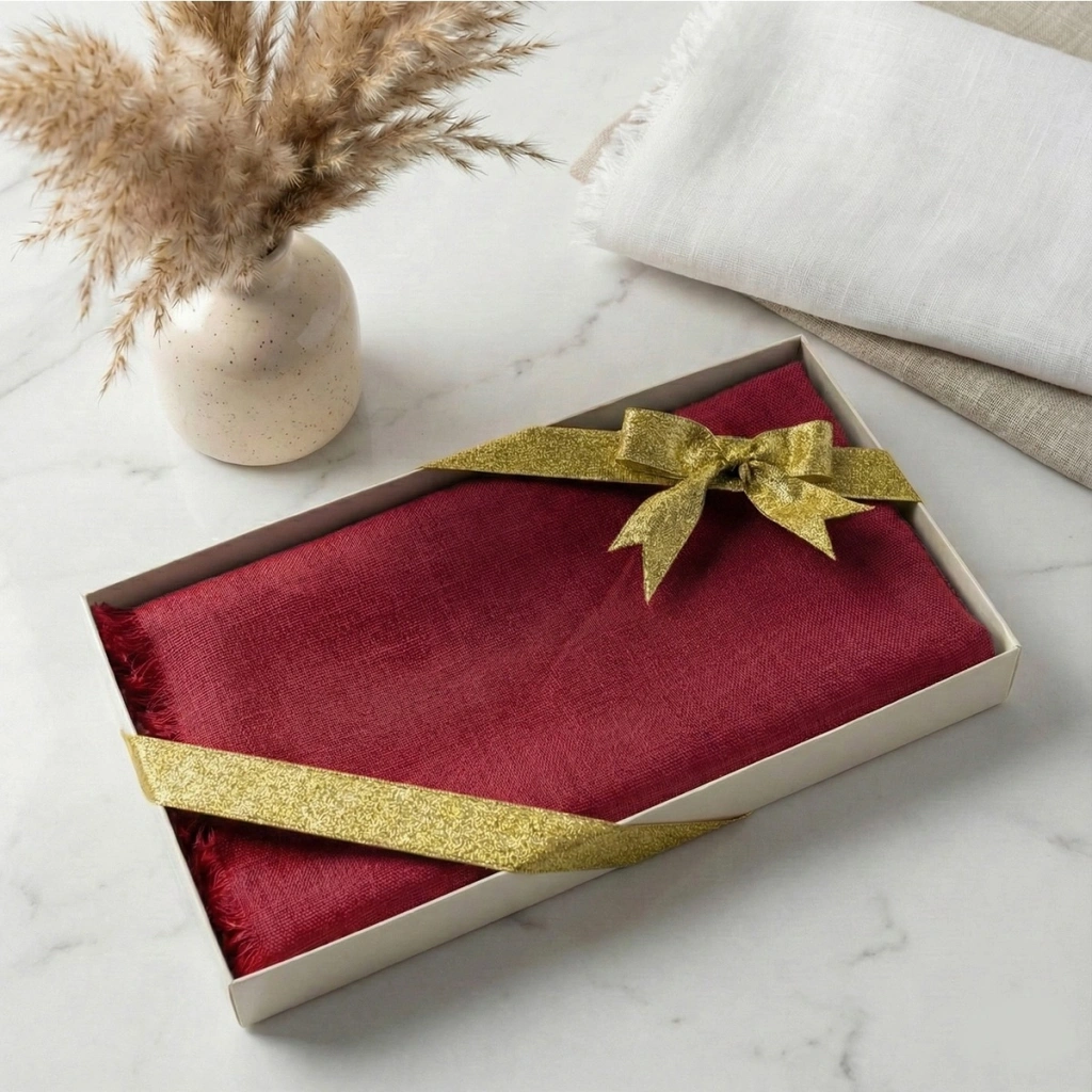 Hediyelik Asetat Kutuda Kurdele Süslemeli Flamlı Eşarp