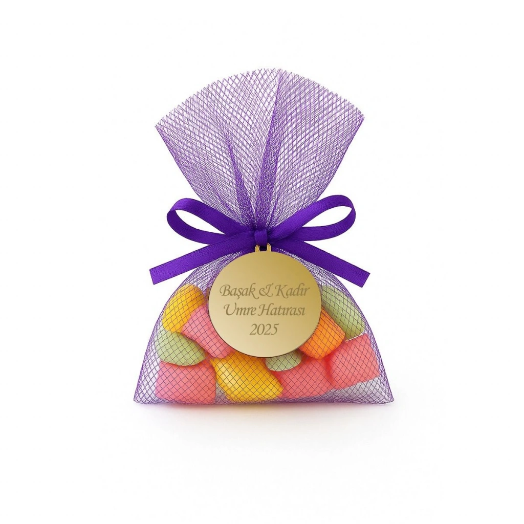 İsme Özel Mor Renkli Tül Kese İçerisinde Mevlüt Şekeri
