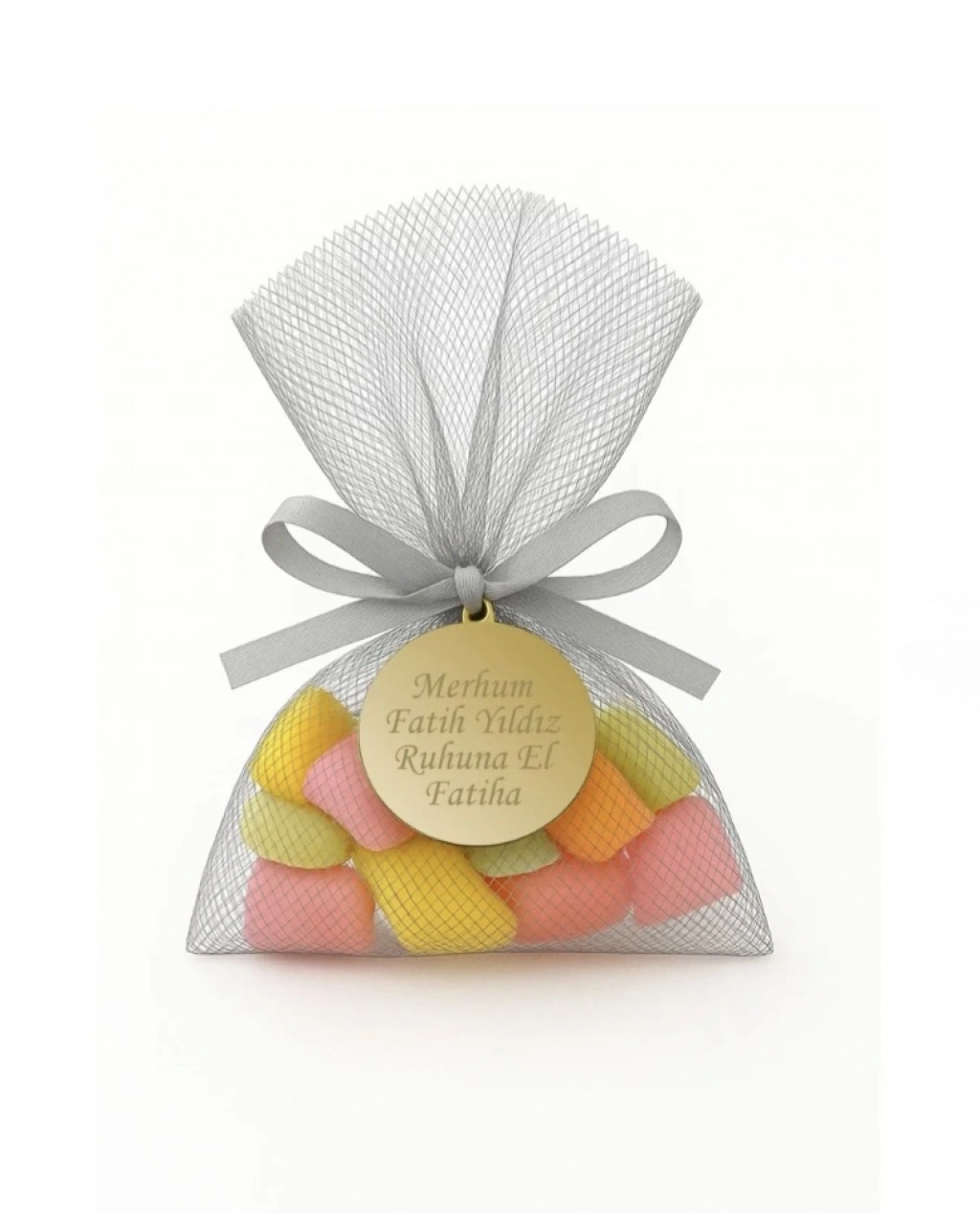 Tül Kese İçerisinde İsme Özel Pleksi ile Mevlüt Şekeri