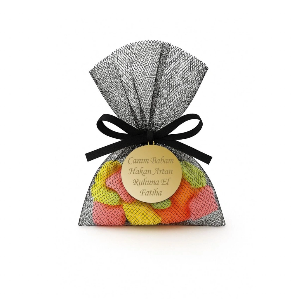 Tül Kese İçerisinde İsme Özel Pleksi ile Mevlüt Şekeri