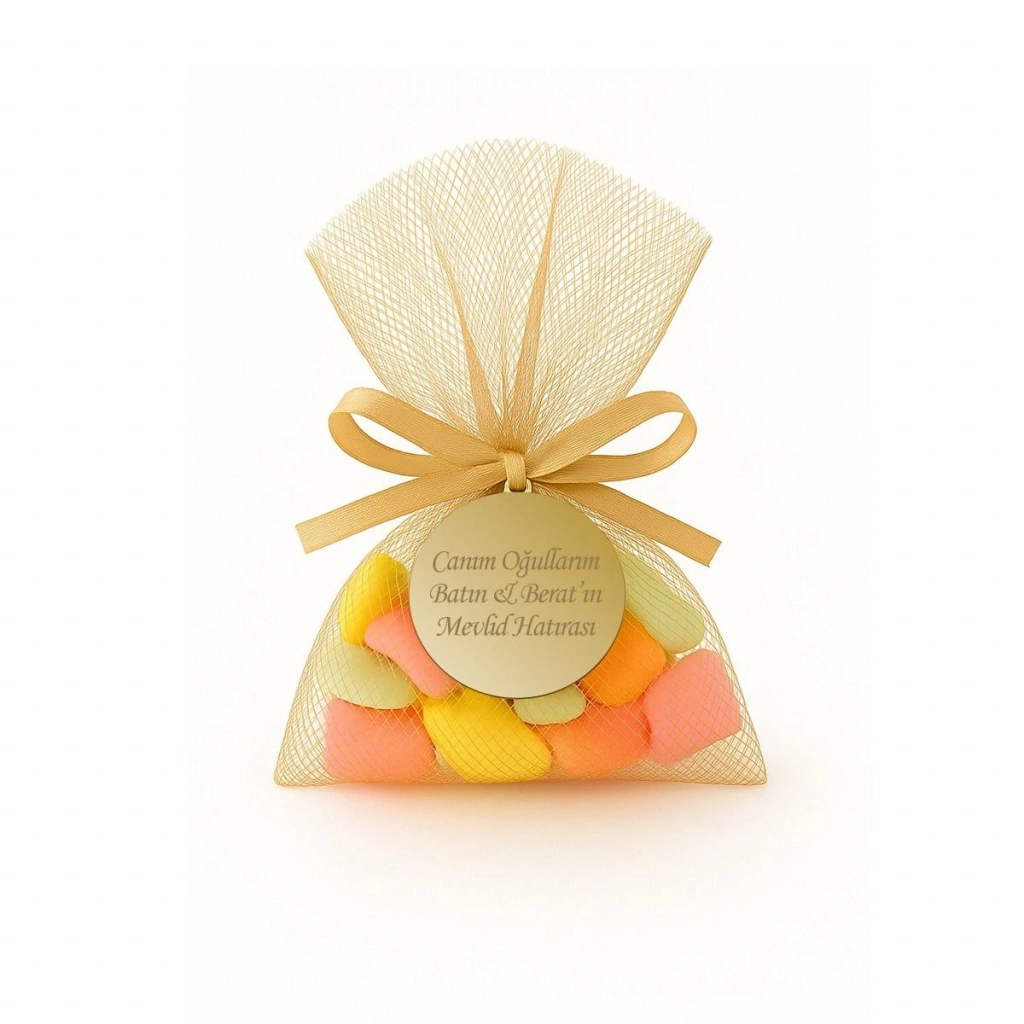 Tül Kese İçerisinde İsme Özel Pleksi ile Mevlüt Şekeri