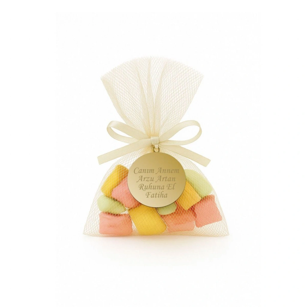 Tül Kese İçerisinde İsme Özel Pleksi ile Mevlüt Şekeri