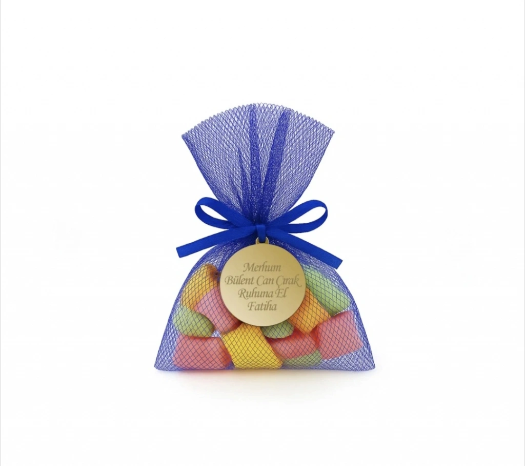 Tül Kese İçerisinde İsme Özel Pleksi ile Mevlüt Şekeri