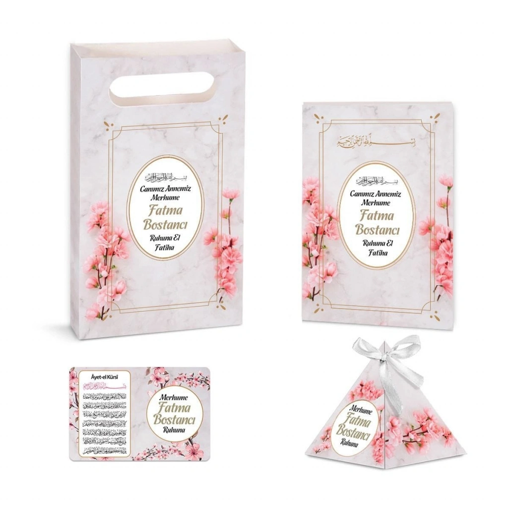 Zerafet Model Pembe Renkli Yasin Kitabı, Piramit Külah, Mevlüt Şekeri, Ayet-el Kürsi Magnet, Karton Çanta