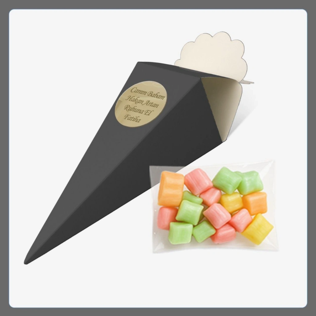• Siyah Renkli İsme Özel Külah İçerisinde Mevlüt Şekeri