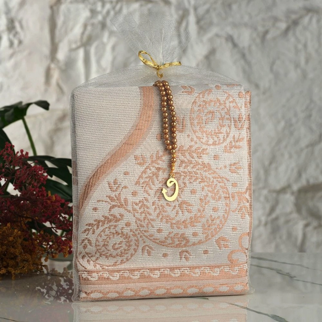Tül Kese İçerisinde Gold Renkli Seccade ve Tesbih