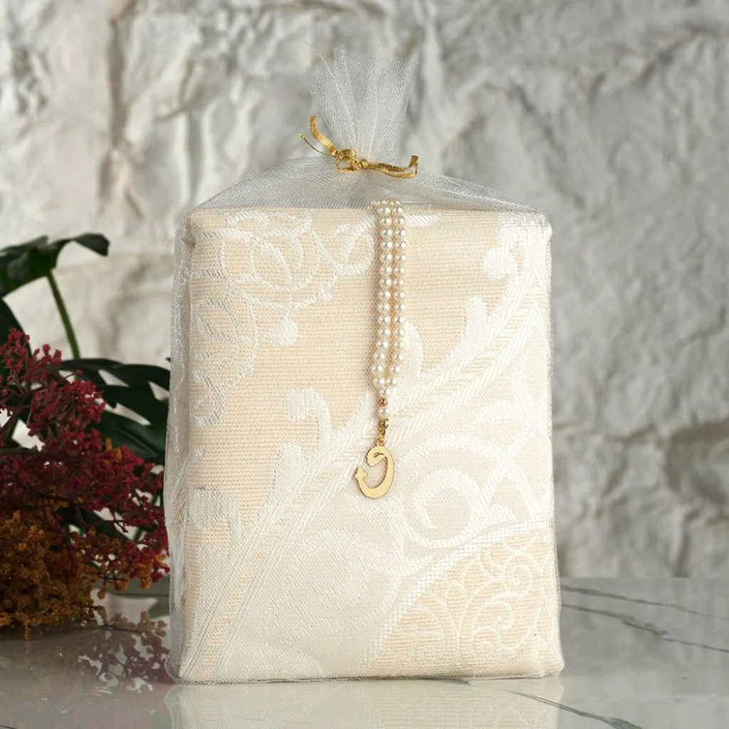 Tül Kese İçerisinde Krem Renkli Seccade ve Tesbih