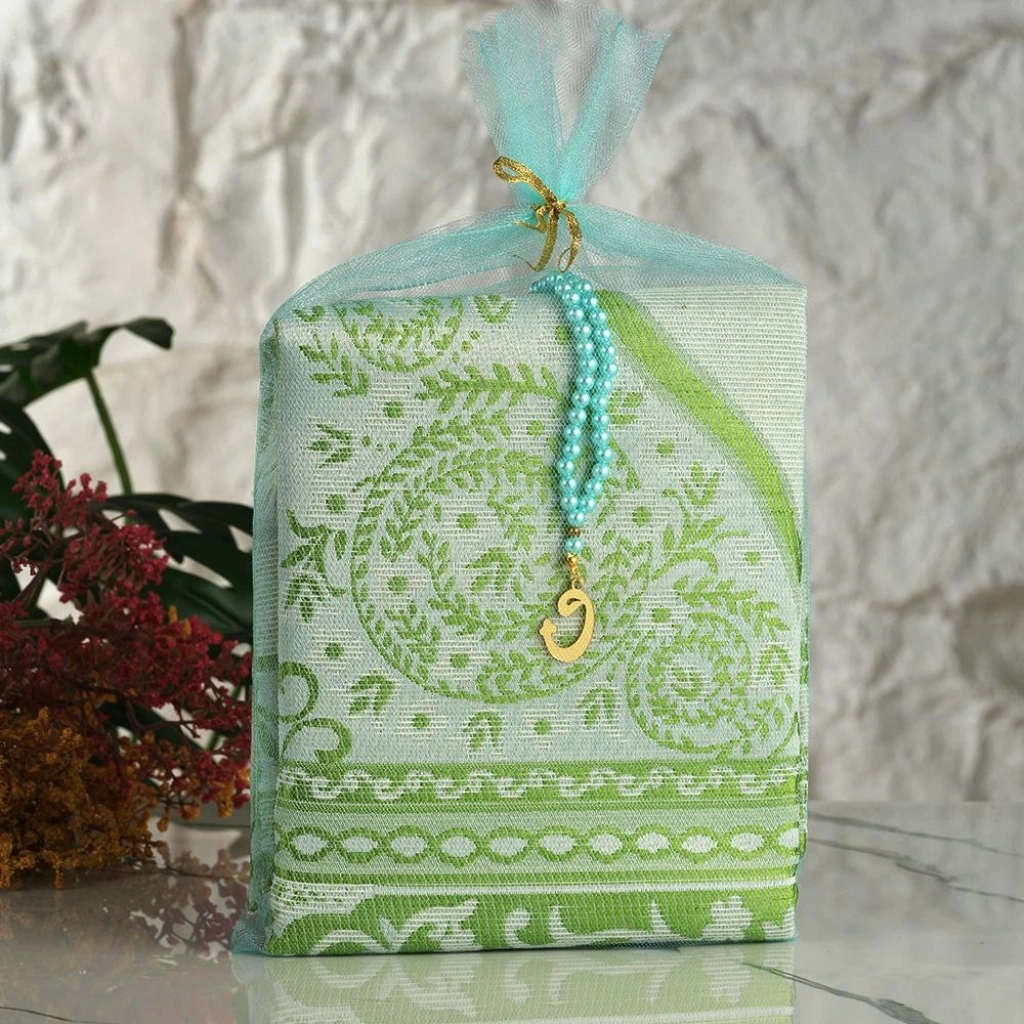 • Tül Kese İçerisinde Su Yeşili Renkli Seccade ve Tesbih
