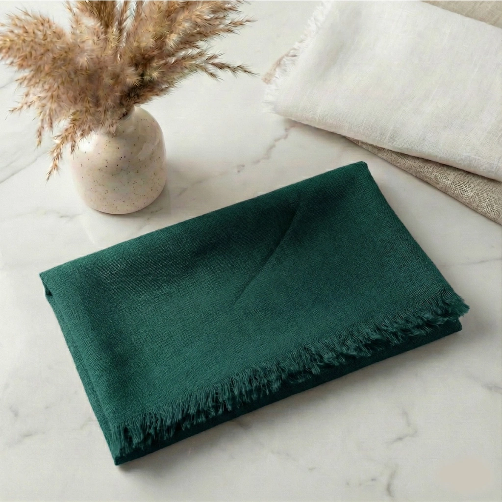 • Zümrüt Renkli Flamlı Pamuk Eşarp