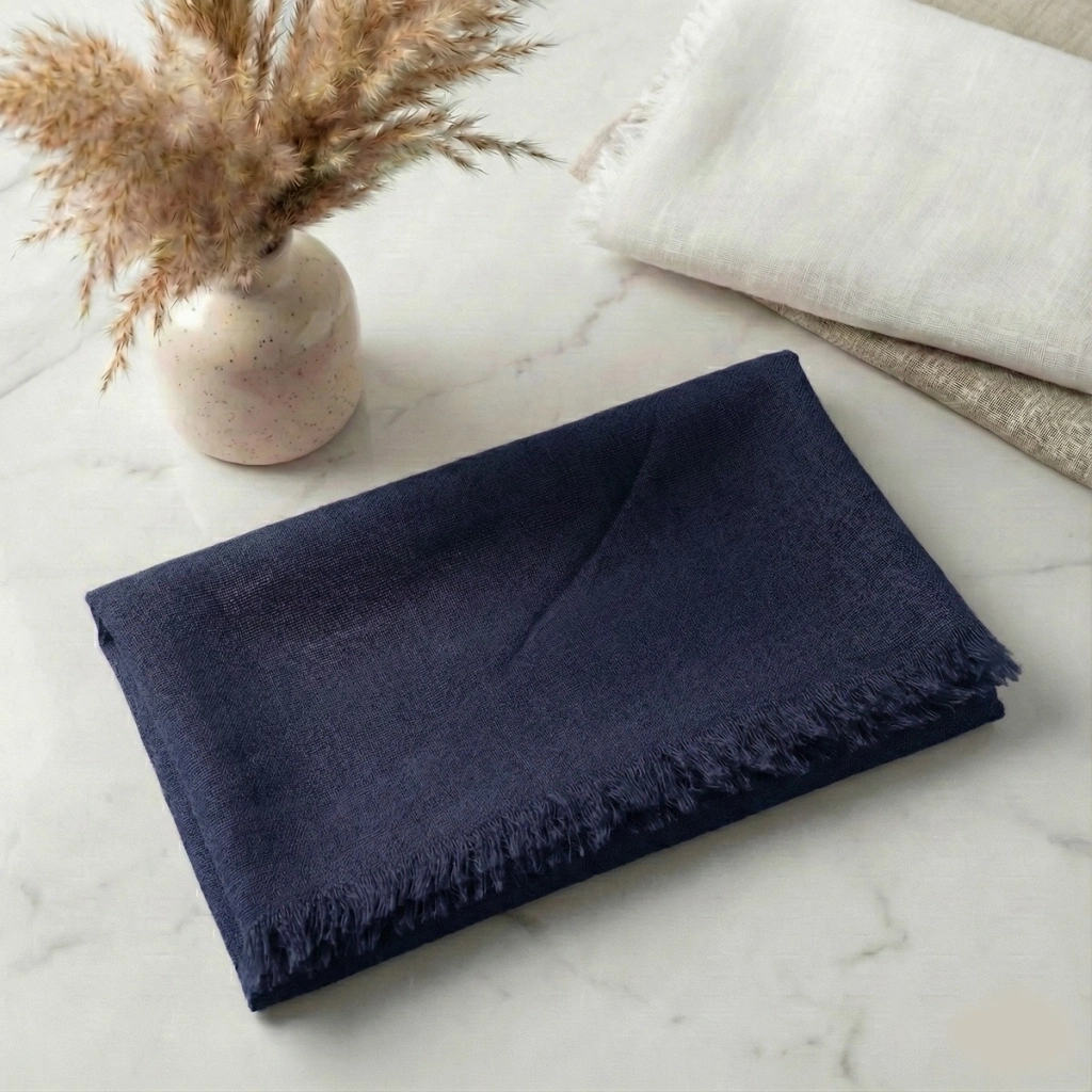 Lacivert Renkli Flamlı Pamuk Eşarp